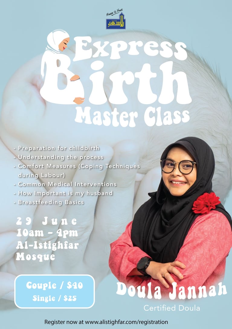 Prepare for birth with calm, confidence, and clarity. We designed this personalised private session to equip you and your partner with knowledge, empowerment, and readiness for the upcoming journey. Drawing from over a decade of doula experience, Doula Jannah combines practical knowledge with powerful mindset work to support a positive birth experience.